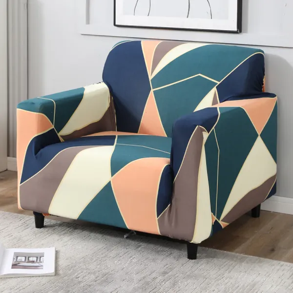 Blue Abstract Print Polyester Elastic Stretchable Printed Sofa Cover