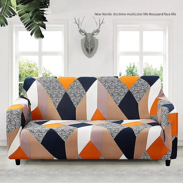 Prism Orange Polyester Elastic Stretchable Printed Sofa Cover
